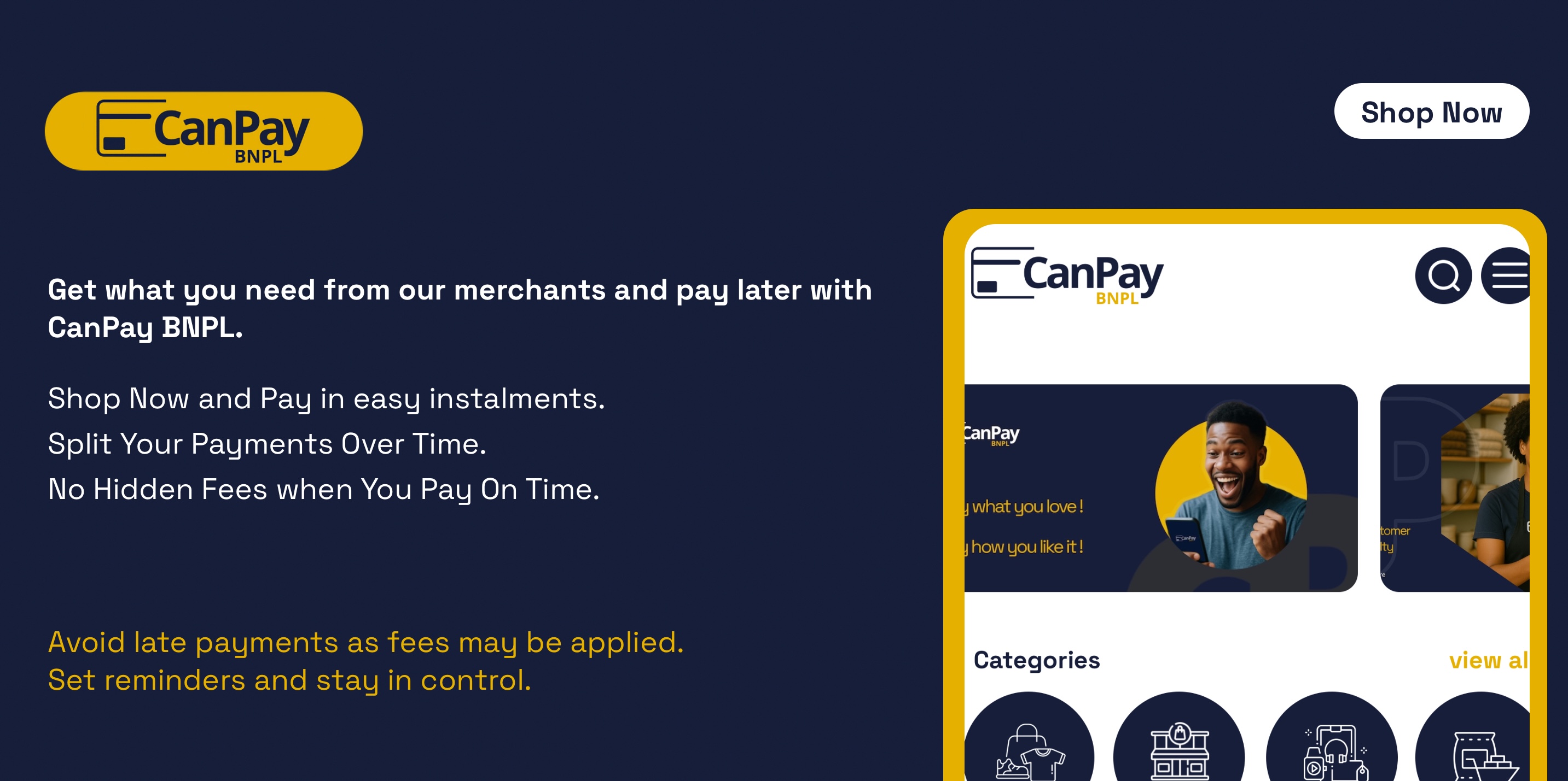 Buy Now, Pay Later (BNPL) solution designed to empower consumers with flexible, interest-free weekly or low bi-weekly and monthly. Make 25% payment upfront and split purchases into manageable installments, CanPay gives you the freedom to shop smarter and manage your finances better. This solution empowers you to get what you need today with no stress, no hidden surprises.
